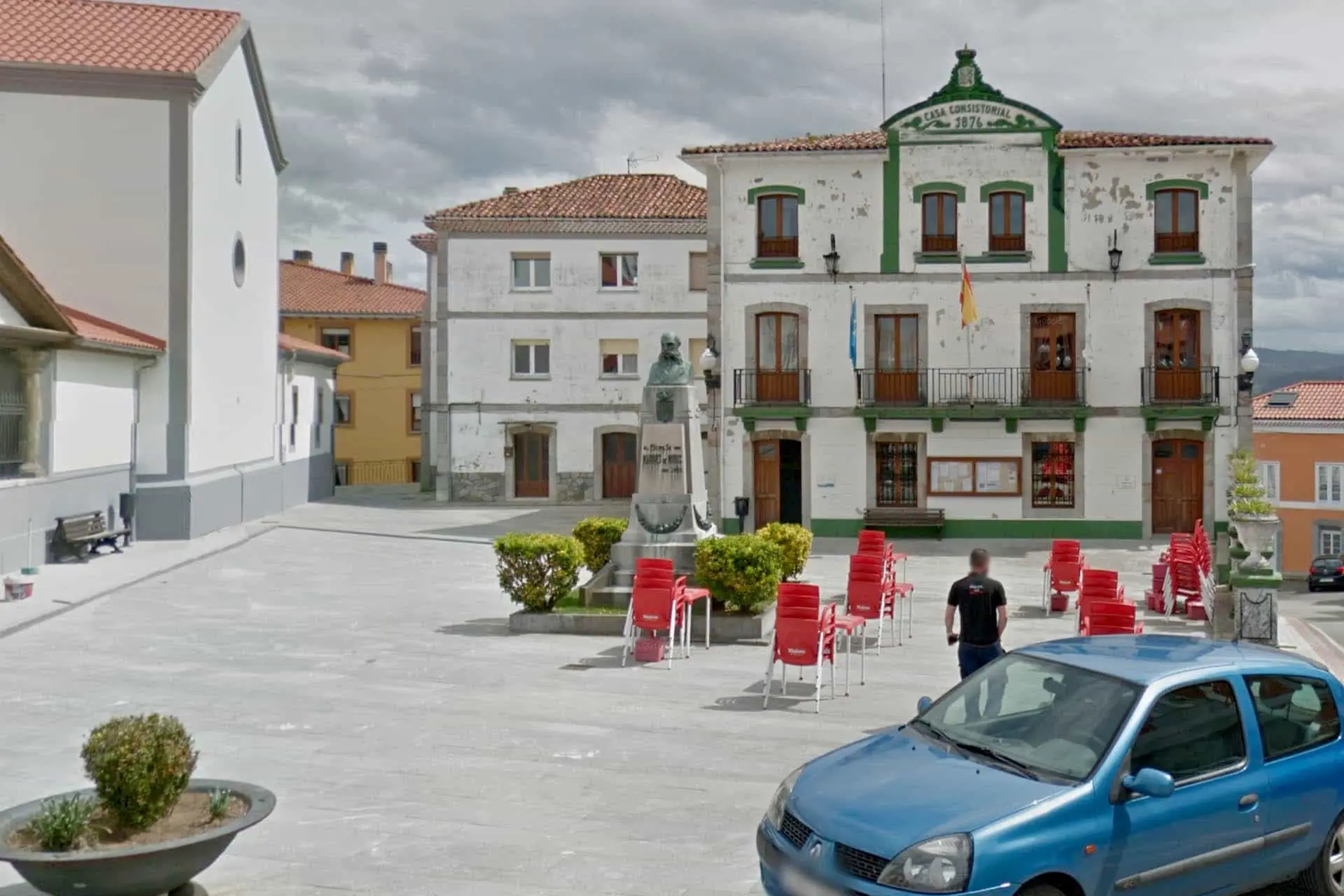 Escultura «Monumento de Constantino Fernández Vallín». En la plaza del Marqués de Muros. Fernández-Vallín y Álvarez-Albuerne, Constantino. Marqués de Muros. Diplomático y político nacido en La Habana, hijo de padres ...